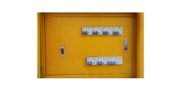 4、臨時(shí)配電箱接業(yè)主配電箱空氣開(kāi)關(guān)下樁頭,并且固定,施工時(shí)用電必須從配電箱中接出。