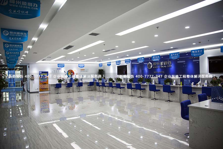 神州順利辦是現(xiàn)代級(jí)企業(yè)服務(wù)的締造者,解決企業(yè)在"生老病死"過程中的各種剛性服務(wù)需求。本案是其位于深圳市南山區(qū)的運(yùn)營中心。電梯出口便是服務(wù)大廳,房頂直垂的提示牌讓人快速找到辦事窗口。